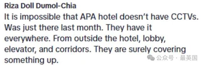 APA酒店没有监控录像,这谁信?上个月我去的时候哪儿哪儿都有摄像头。很显然他们在故意隐瞒什么。