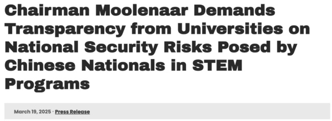 可以说从3月,国会针对中国留学生,向斯坦福、卡内基梅隆、普渡等六大名校发信,要求限时交出中国留学生包括姓名、在校学习情况,曾就读大学名称,甚至学费来源等全部资料时,我们就已经感觉到了一丝不对。