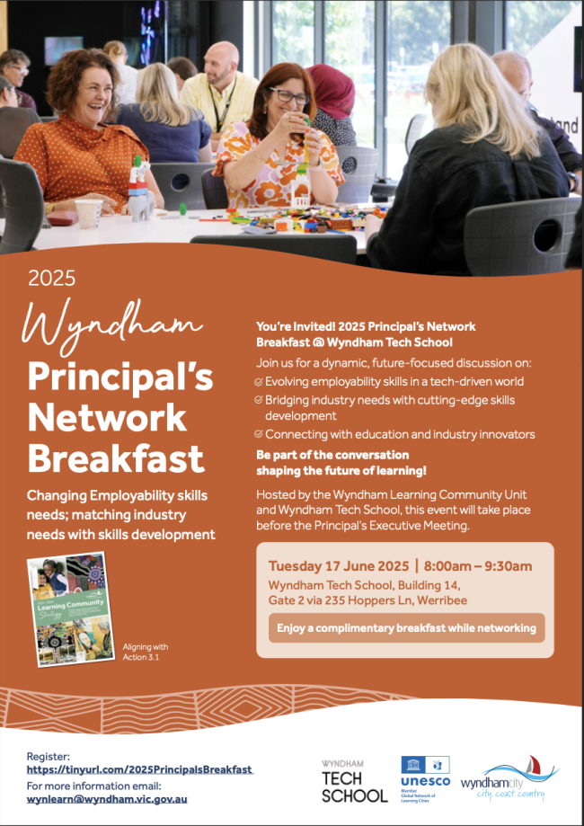 6月17日上午,云登市议员Cr Larry Zhao出席了在云登技术学校(Wyndham Tech School)举办的2025年云登校长早餐会。此次活动以“变化中的就业技能需求:匹配行业需求与技能发展(Changing Employability skills needs:matching industry needs with skills development)”为主题,汇聚了云登地区中小学校长及教育界领袖。