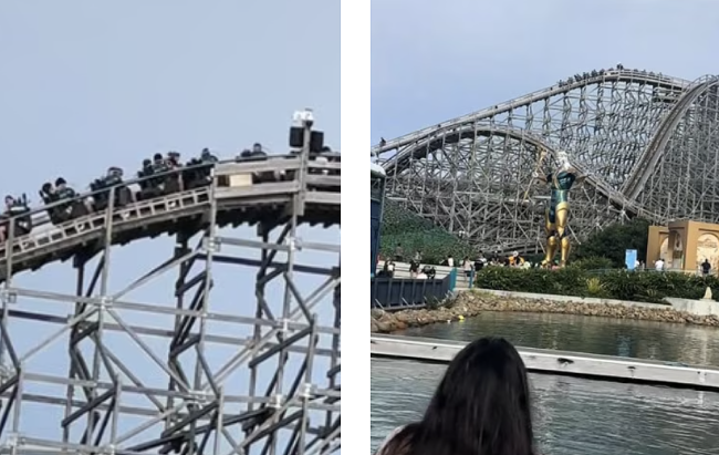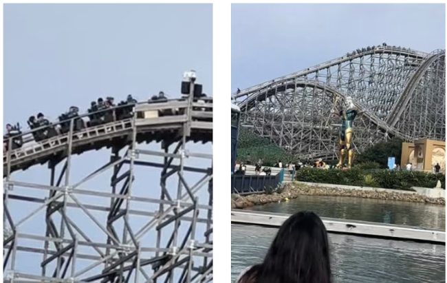 抖音用户@hlhqdwayne表示:“看看这些可怜的人,我们在一天结束时拍到他们被困在过山车顶端。”