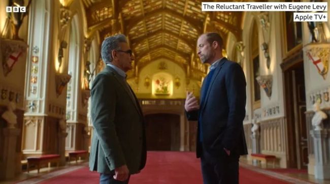 最近,威廉王储参加了Apple TV+的一档旅行节目《不情愿的旅行者》,节目主持人、加拿大演员尤金·列维(Eugene Levy)受到威廉的邀请,在他的陪同下参观温莎堡,并对他进行访谈。