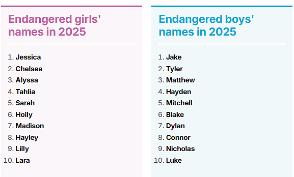 报告指出,过去十几年里火遍澳洲中小学的名字,如今几乎都被淘汰出局!